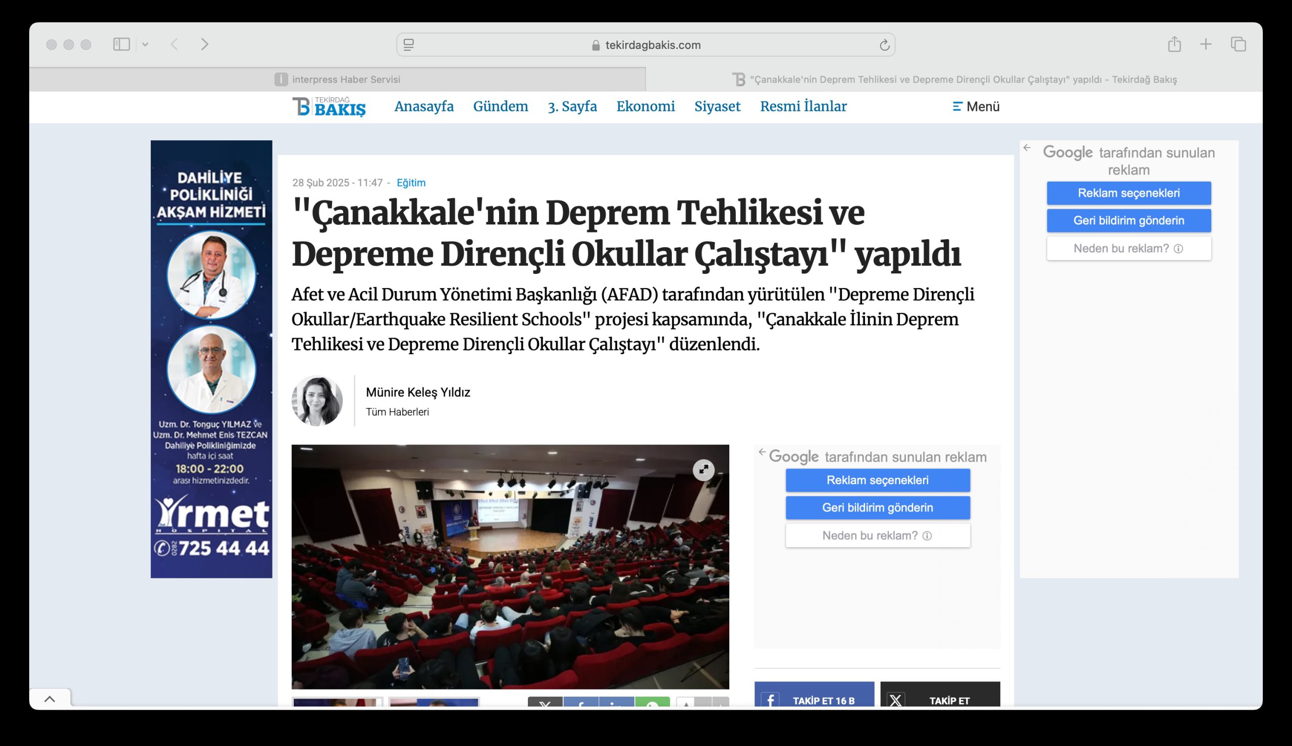 EReS Public Awareness Events in Çanakkale: Strengthening Earthquake Resilience in Schools